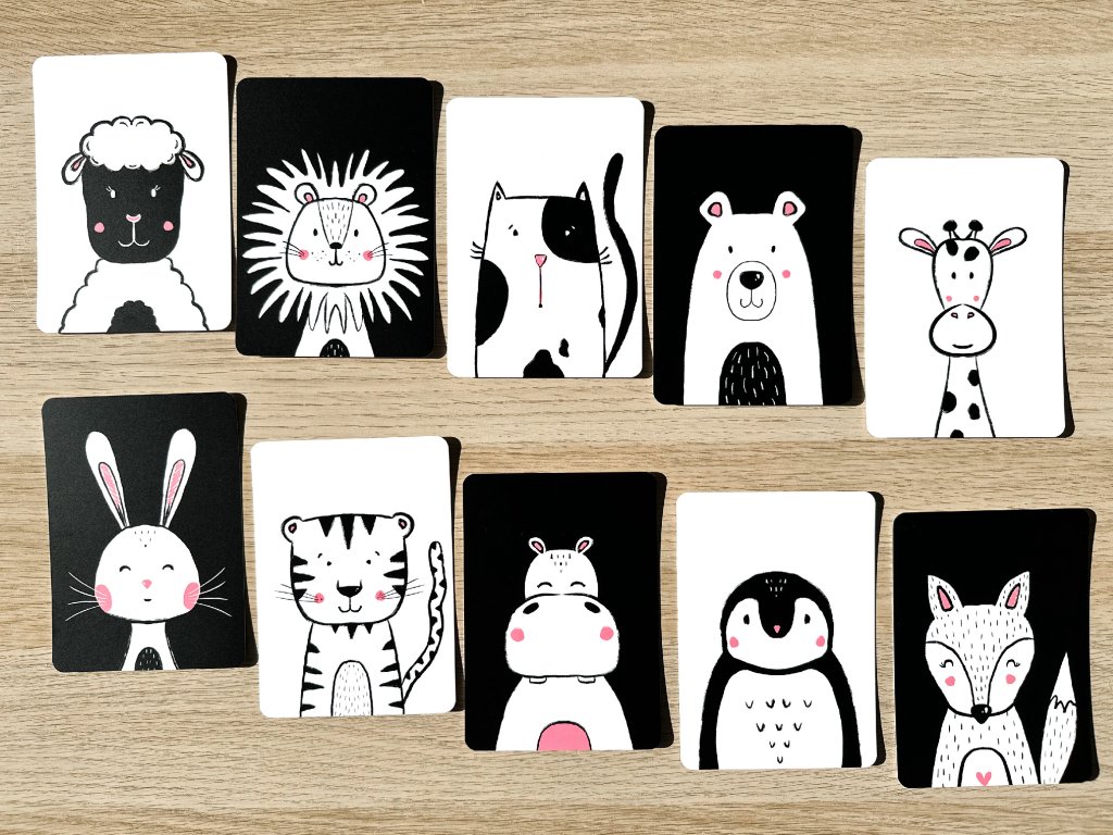 Kontrastní kartičky se zvířátky a říkankami jsou skvělým společníkem pro první objevování světa. Na jedné straně každé kartičky najdete jednoduchý kontrastní obrázek zvířátka, na druhé milou krátkou říkanku. Kartičky podporují rozvoj zraku, pozornosti i společné chvíle rodičů s dětmi.